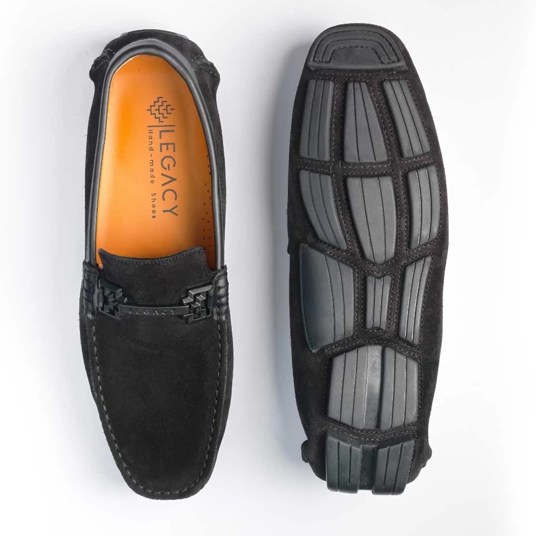 En cuir de veau suédé. La partie intérieure accueille ton pied sans que tu aies à porter de chaussettes. Il dispose d’une semelle confortable. Tu peux porter ton mocassin bleu avec un blazer non-doublé en lin et coton couleur crème, une chemise et un jean.
