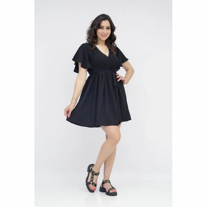 Cette robe courte cloche pour femme est un véritable atout pour votre garde-robe. Avec son col châle et sa silhouette avec manches volantées , elle allie style et féminité. les volants ajoutent une touche de charme et de vivacité à la robe, lui donnant une allure moderne et tendance. La ceinture à nouer, qui accompagne la robe, permet de cintrer la taille et de mettre en valeur vos courbes naturelles. Elle ajoute également une touche d’élégance et permet d’ajuster la robe à votre préférence. La coupe courte de la robe met en valeur vos jambes et apporte une touche de légèreté à votre tenue. Elle est idéale pour les occasions estivales, les soirées entre amis ou même pour une sortie décontractée en ville. Fabriquée avec des matériaux de qualité, cette robe offre un confort optimal tout en étant résistante. Que ce soit pour une escapade en ville, une soirée estivale ou une occasion spéciale, cette robe est un choix polyvalent et élégant. Elle vous permettra de vous démarquer avec style et de vous sentir confiante et élégante tout au long de la journée.